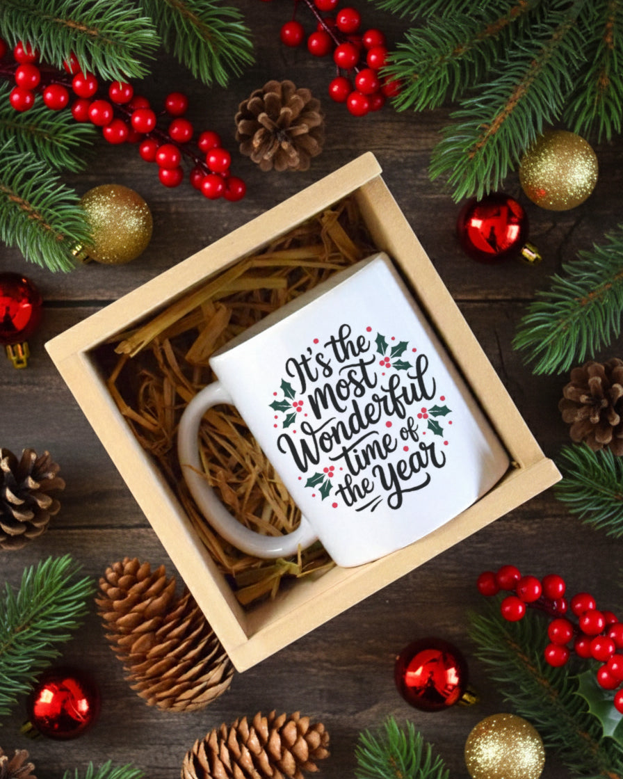 Caja decorada con lazo y tarjeta con mensaje personalizado