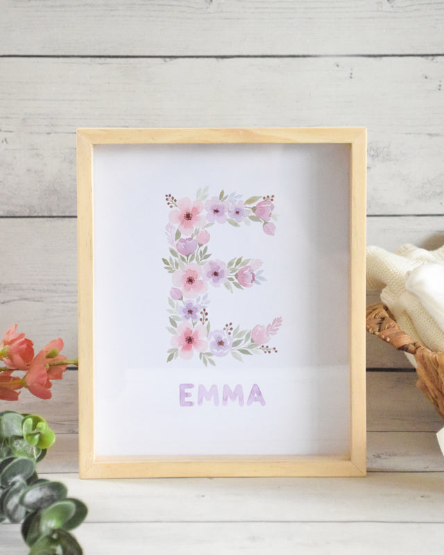 Este hermoso cuadrito con la inicial y nombre de el/la bebé.